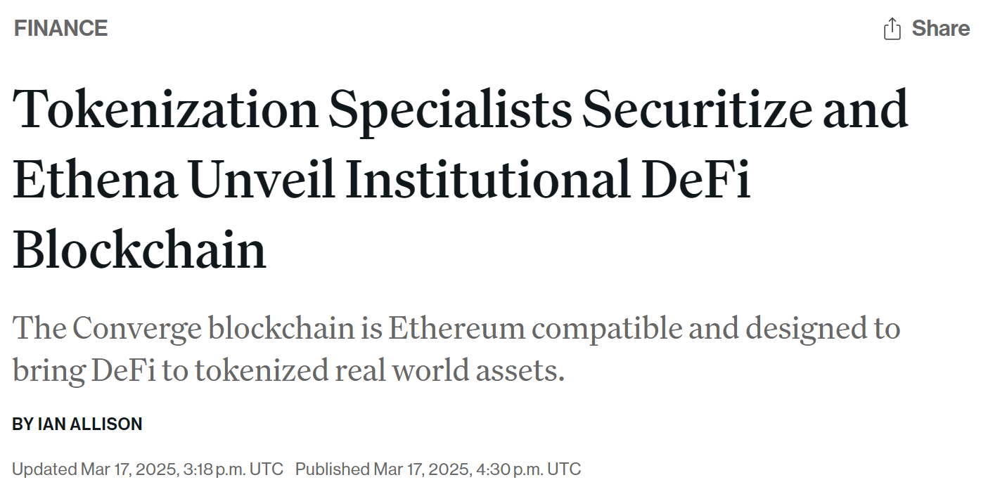 - Securitize 和 Ethena 推出 EVM 兼容区块链 Converge