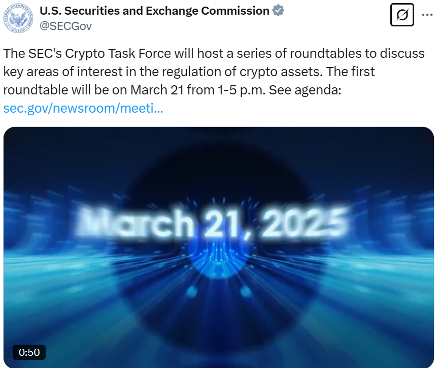- 美 SEC 加密货币工作组本周将召开首次圆桌会议