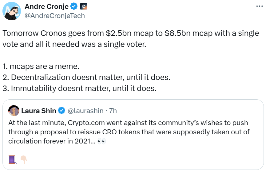 - Sonic 联创质疑并讽刺 “Cronos 关于恢复已销毁的 700 亿枚 CRO 提案” 的投票结果