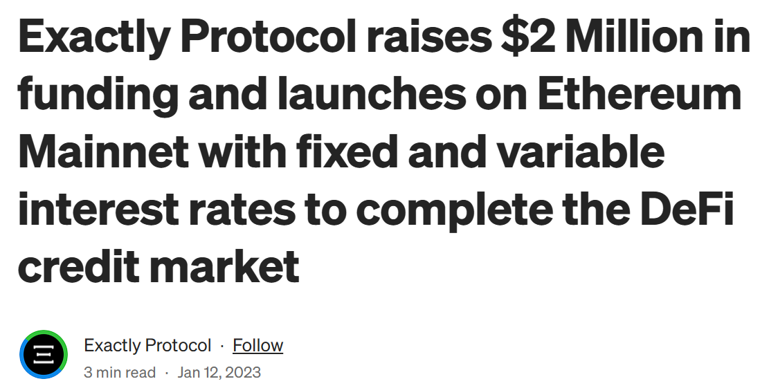 - 去中心化借贷协议 Exactly Protocol 完成 200 万美元融资,Synthetix 创始人领投