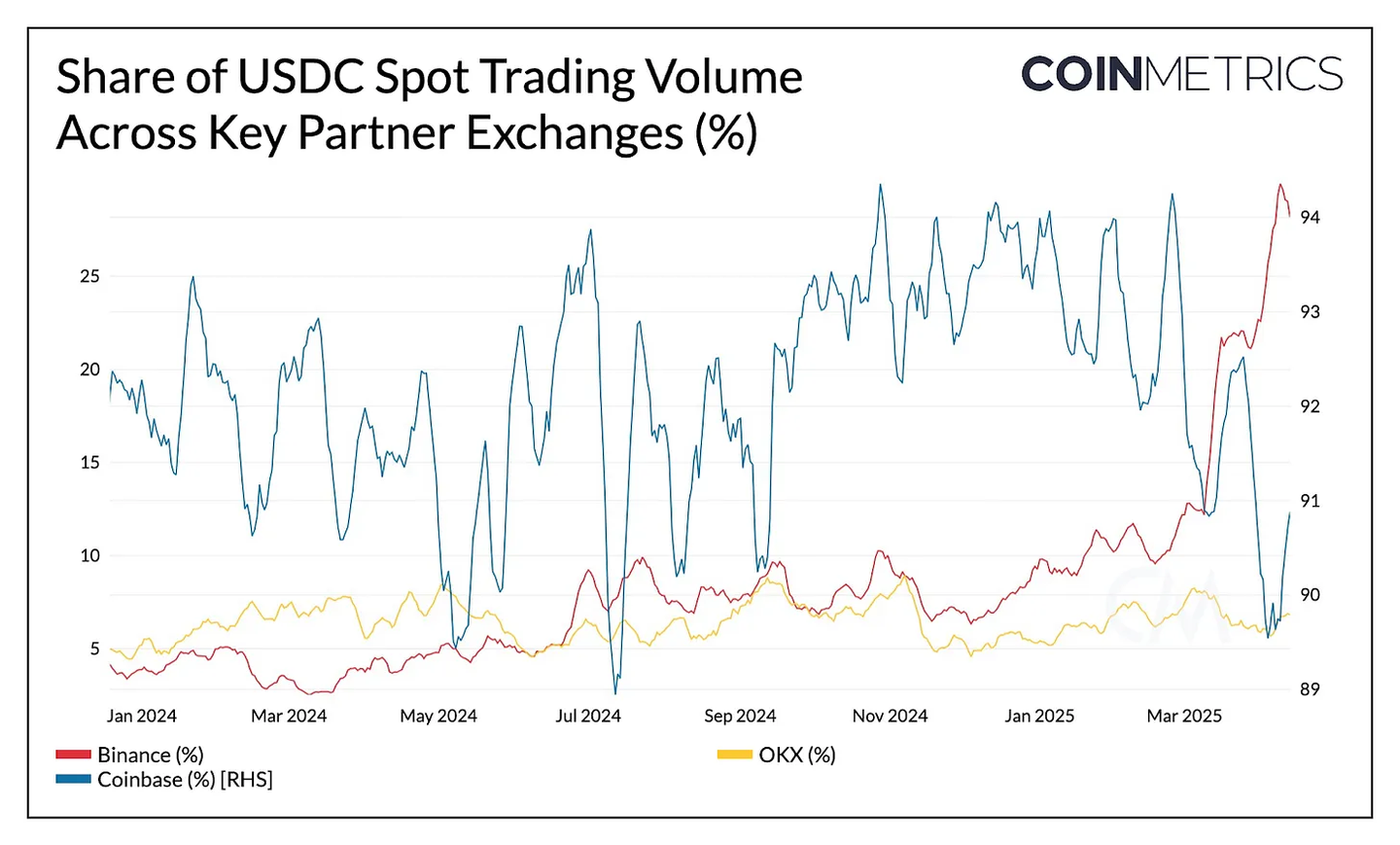 3. USDC 在主要交易平台的使用持续增长,目前占 BN 现货交易量的 29%,得益于 Circle 的战略合作伙伴关系。