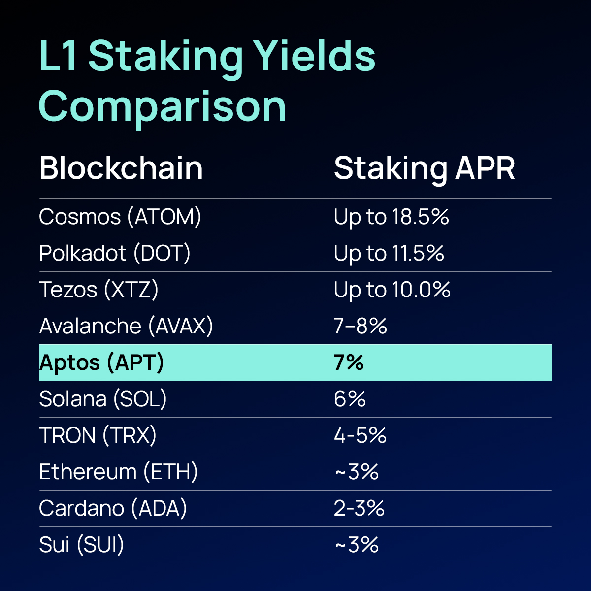 此外,也有评论认为,降低后的质押收益率(3.79%)相对于其他提供更高回报的链(如 Cosmos 约 15%)缺乏竞争力,可能导致寻求高收益的大户和机构将资金转移到其他网络,减少 Aptos 的 TVL 和流动性,造成资金外流风险。此外,较低的质押收益率也会降低 AptosDeFi 协议对流动性提供者的吸引力,影响协议的增长和用户参与度。