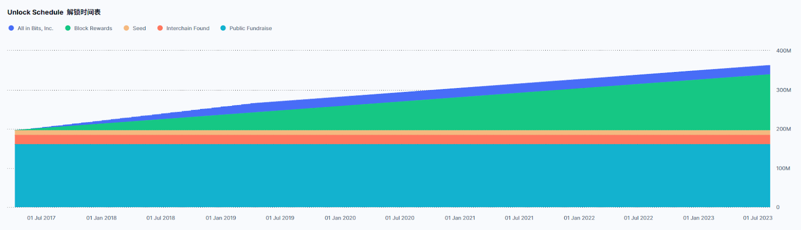 此外,还有就是 Cosmos 的质押收益较为典型,高达 14.26%,从代币的流通数量上来看,也是呈现出持续爬坡的效果。目前 Cosmos 的质押率约为 59%,而在未达到 67% 之前,这种通胀还将继续。只不过,虽然质押收益很高,但 ATOM 代币的价格走势却是持续下跌。从高点 44 美元最低跌至 3.81 美元,跌去了 91%。